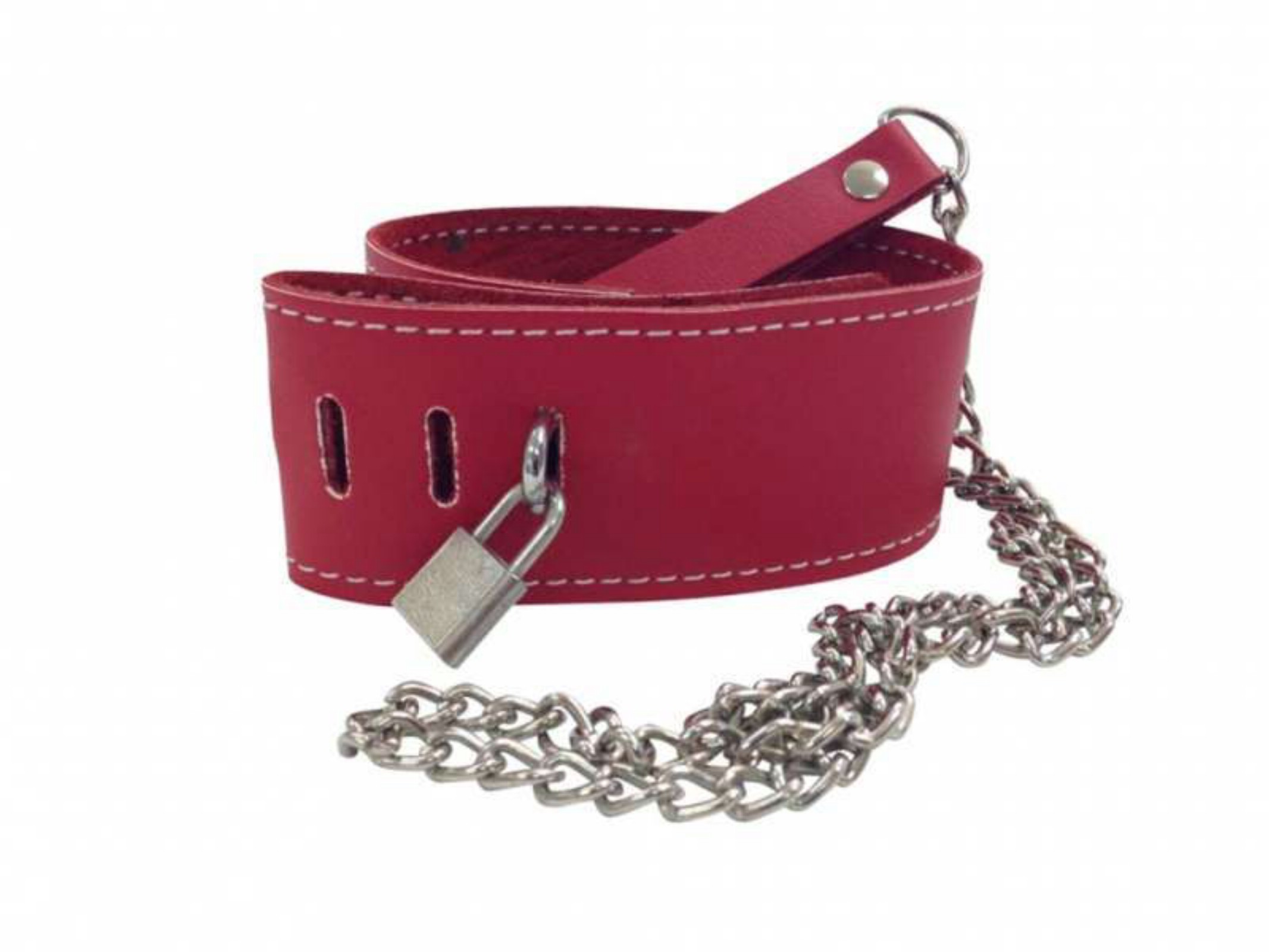 Scope of delivery: 1x Leather neck band, 1x Metal leash, 1x Padlock and 2x Keys